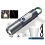 roduct Details 🔦 Model: P50/WL Wick Flashlight Size: 16 × 3.2 cm (6.2 × 1.2 in) Lamp Bead: LED + COB Wick Type: P50/WL Battery Capacity: 1200 mAh (rechargeable) Material: ABS + Aluminum Alloy Charging Port: Type-C fast charging Zoom Feature: Telescopic zoom lens for focused or wide beam Lighting Modes: 4 adjustable modes for versatile use